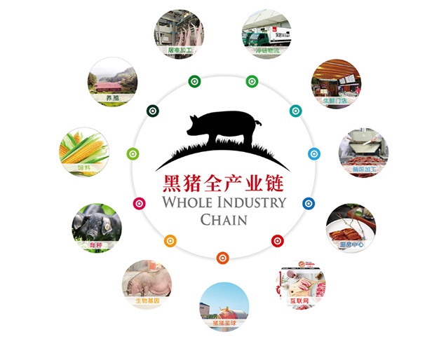公司致力于打造完整的黑豬全產業鏈模式,涵蓋良種繁育—生態(tài)養殖—透明工廠—肉品加工—冷鏈物流—品牌門店—文化旅游,實現全產業鏈協同發(fā)展。